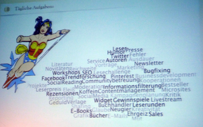 Die Anforderungen wie Selbstständigkeit, Kreativität, Sensibilität, Flexibilität, ständiges Lernen und Informationsfilterung, Teamfähigkeit und die Kenntnis des aktuellen Buchmarktes fasst sie selbst lächelnd im Jobprofil von „Wonder Woman“ zusammen ;-).